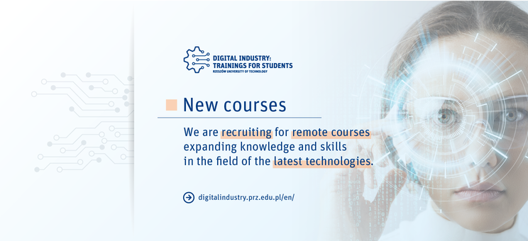 W ramach pojektu: „Cyfrowy przemysł: szkolenia dla studentów” (numer umowy: PPI/SPI/2020/1/00029/U/00001) realizowanego ze środków Europejskiego Funduszu Społecznego w ramach Programu Operacyjnego Wiedza Edukacja Rozwój, projekt pozakonkursowy pt. „Wsparcie zdolności instytucjonalnej polskich uczelni poprzez tworzenie i realizację międzynarodowych programów studiów” (Działanie: 3.3 Umiędzynarodowienie polskiego szkolnictwa wyższego), nr POWR.03.03.00-00-PN16/18. Politechnika Rzeszowska w okresie realizacji: 01.07.2021 – 31.07.2022 realizowała kursy dla studentów.